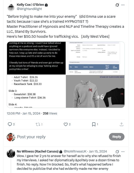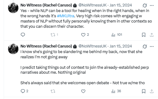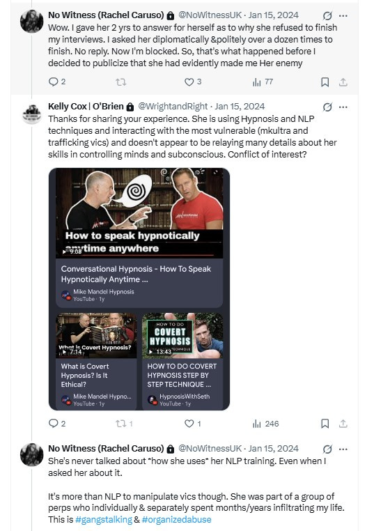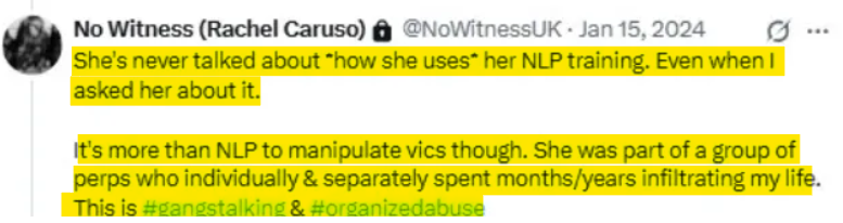 XKelly was not the only one who had asked Emma about her NLP training. Another person who had been worried about how Emma might use her NLP training was Rachel Caruso. She also had expressed concern in January 2024.