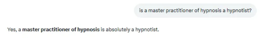David claimed that Emma was not a hypnotist, but as we saw in this post [EP1] then the way Emma described herself very much gave people the impression that she was a hypnotist. She only had herself to blame for deliberately giving that impression. Grok also assessed a master practitioner of hypnosis to be a hypnotist, Emma Katherine, The Imagination and NLP 2 [EP2].