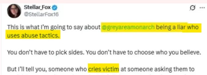 Perhaps Shannon finally spoke to ex chief flying monkey StellarFox16 and found out that her guru David Hall aka Grey Area Monarch is a liar and an abuser? StellarFox16, the previous chief flying monkey finally saw through David Hall’s abuser techniques and lies after she disagreed with his inflammatory behaviour.
