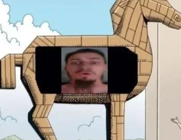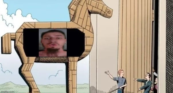 David scaremongers about Trojan horses and satanic infiltrators yet he is the ultimate Trojan horse, causing fear and division amongst survivors and advocates, and anyone susceptible to his luciferian propaganda techniques.