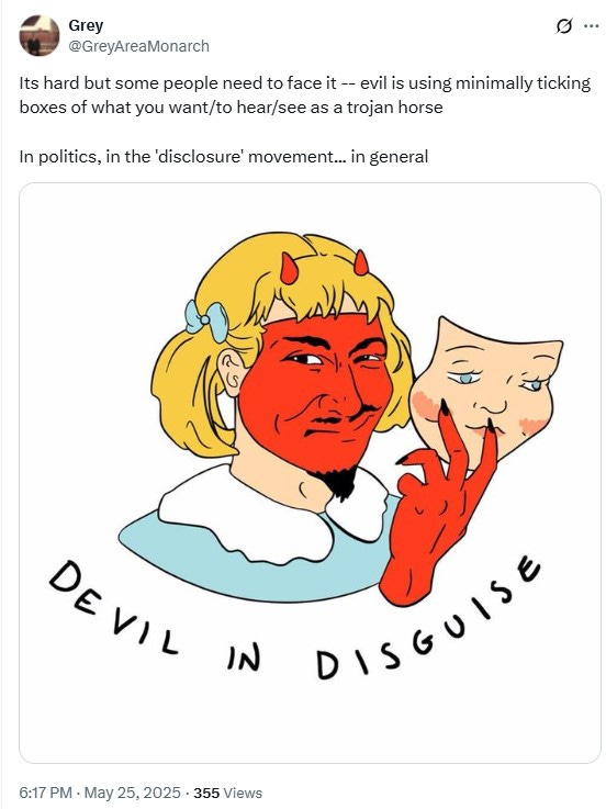 When he posted the meme David said this…“It’s hard but some people need to face it - evil is using minimally ticking boxes of what you want / to hear / see as a trojan horse