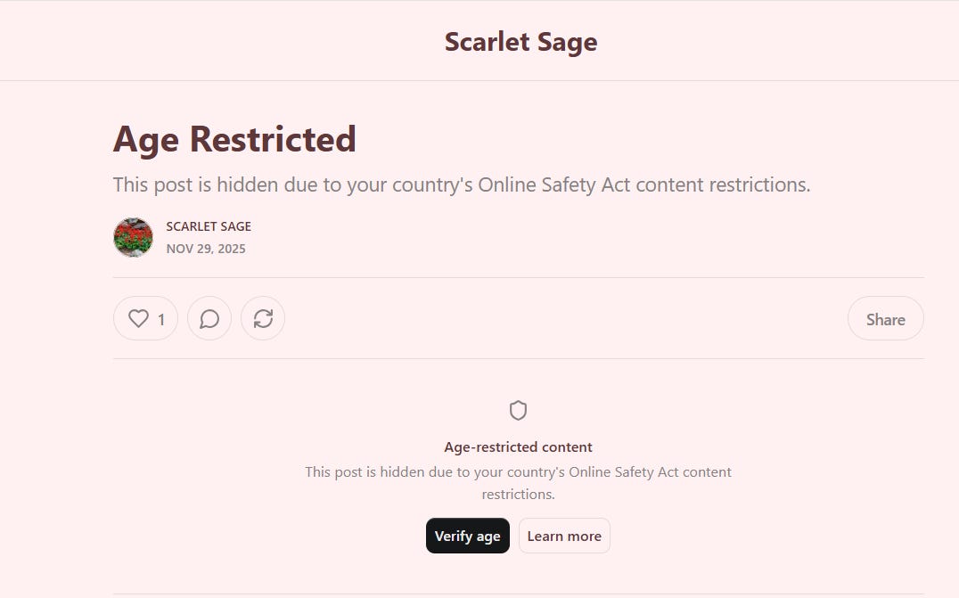 In some browsers, it will not let me see this post. Bizarre. Online Safety Act Hell.