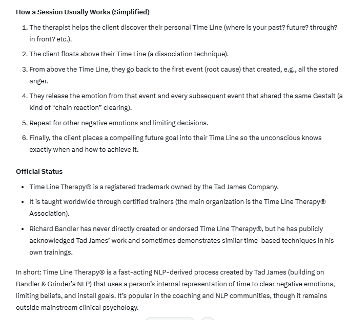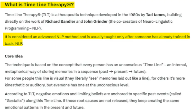 Time Line Therapy according to Grok is considered an advanced NLP method.