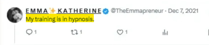 In Dec 2021 Emma had boasted that she was Master Practitioner, both of NLP and Hypnosis. She even seemed to claim to be the same level as the “elite” who were also Master Practitioners. What did she mean by this?