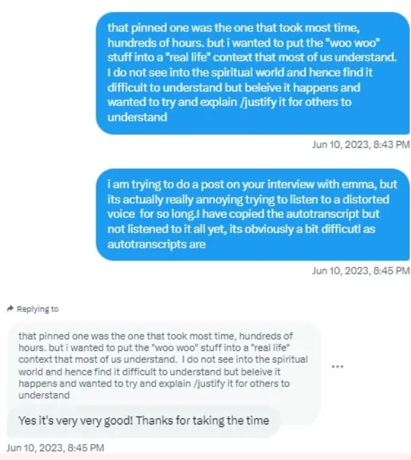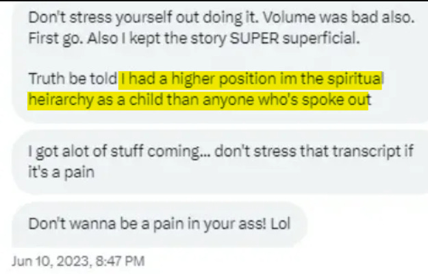 I DM’d David as he requested and I immediately set a boundary that I did not want to discuss Jessie. I had blogged her testimony for just over a year, had a fall out with Jessie 2 years before David contacted me, but did not want to waste my time with these anti-Jessie obsessives. Various anti-Jessie people like Sarah and her mob desperately wanted to splurge out their opinions about Jessie to me, essentially wanting my agreement with their views. They were always lacking information and knowledge as well as any contact with Jessie, whereas I had been in daily contact with Jessie. I had no interest in their agenda to diss Jessie all the time. They were obsessed with Jessie and unfortunately still are.