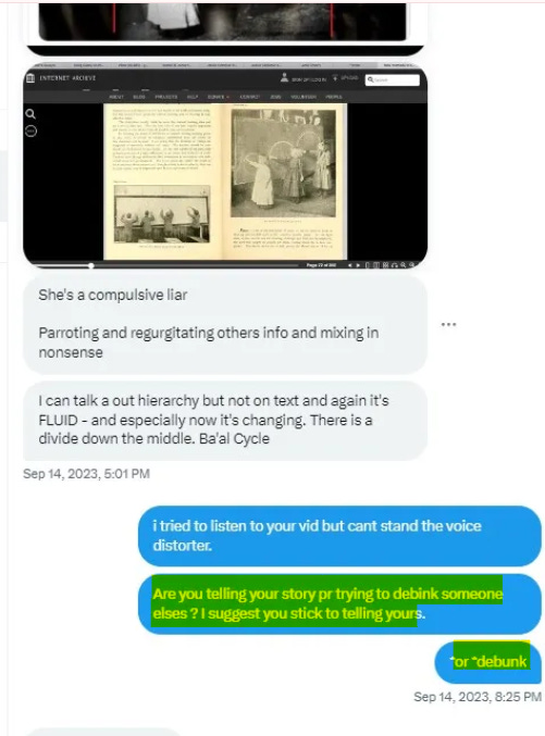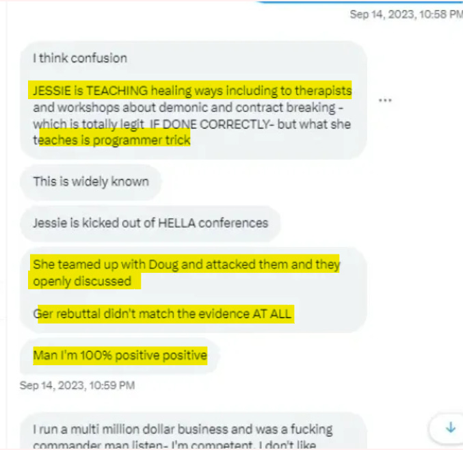 David had tweeted “Here is Jessie HAPPY about legitimate therapists being infiltrated, and having other problems from satanic infiltration (just one of many convos)”. Of course he was lying and propagandising again. If you read it and believe what he said, then you would think badly of Jessie. People reading it without understanding, can be fooled by his propaganda. David is a trained luciferian psyopper and propagandist, he has admitted it. David uses this tactic frequently, of including some “evidence” as a screenshot, and accompanies it with an opinion, as though it is the truth. It’s mostly propaganda. The truth is different.