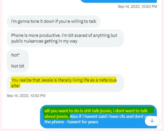 I set a boundary with David on the very first DM, “I am not discussing Jessie, I don’t listen to her stuff”.