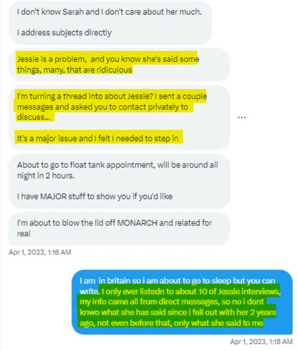 This is the first tranche of David Hall aka Grey Area Monarch’s DM’s to and from me which are on the subject of Jessie Czebotar.