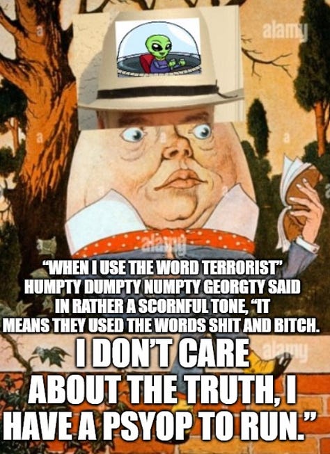 Humpty Dumpty Numpty Georgty and the Fake Terrorist Slur [SSBB18]