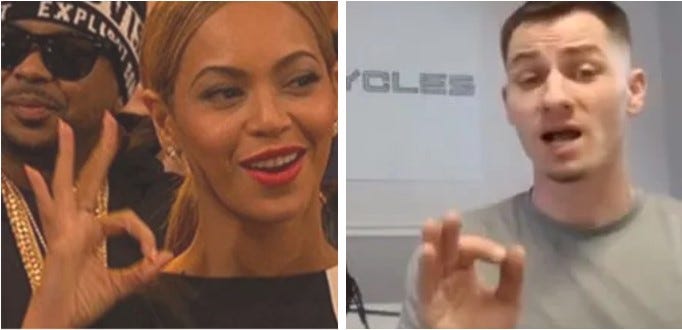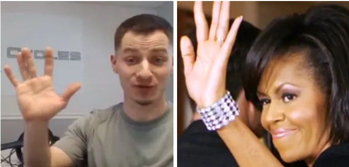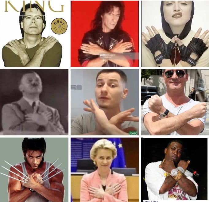Besides claiming that even one hand signal meant that it was at the least a Freudian slip, GreyAreaMonarch has also claimed to be in a higher position in the spiritual hierarchy than anyone else who had spoken out by 2023. So he would know exactly what all the hand signals mean.