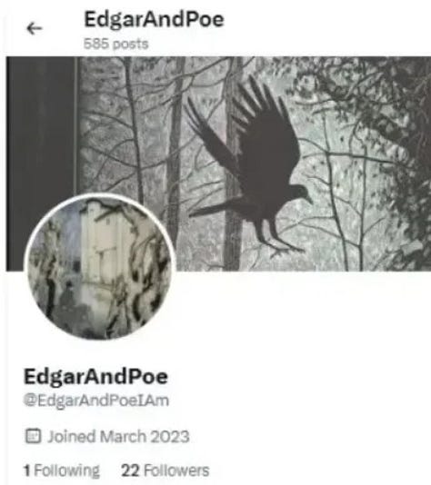 AW is also well known for her sock puppet accounts. One sock puppet account was EdgarAndPoeIam, complete with Raven picture. She seems to be a fan of Edgar Alan Poe.