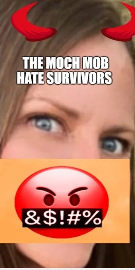 This is the Index for the posts about the Moch mob / Bailey / Brandie hating on survivors. The Moch mob stance is largely anti survivor. They do not believe survivors stories in general, so they cannot put any one individual’s testimony about the Luciferian Brotherhood into context with other survivors.
