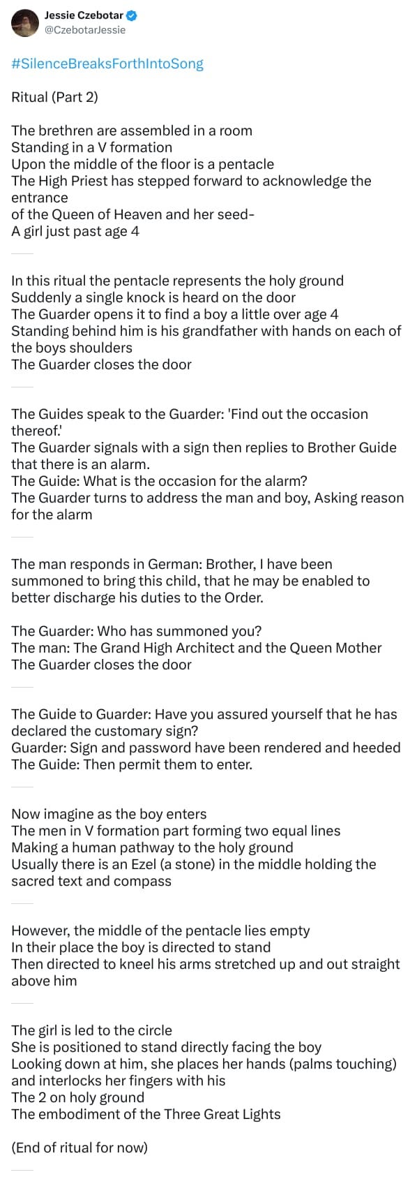 2020 Mar 7 Thread 6 Ritual Part 3 https://resee.it/tweet/1236206704980705286 12 tweets