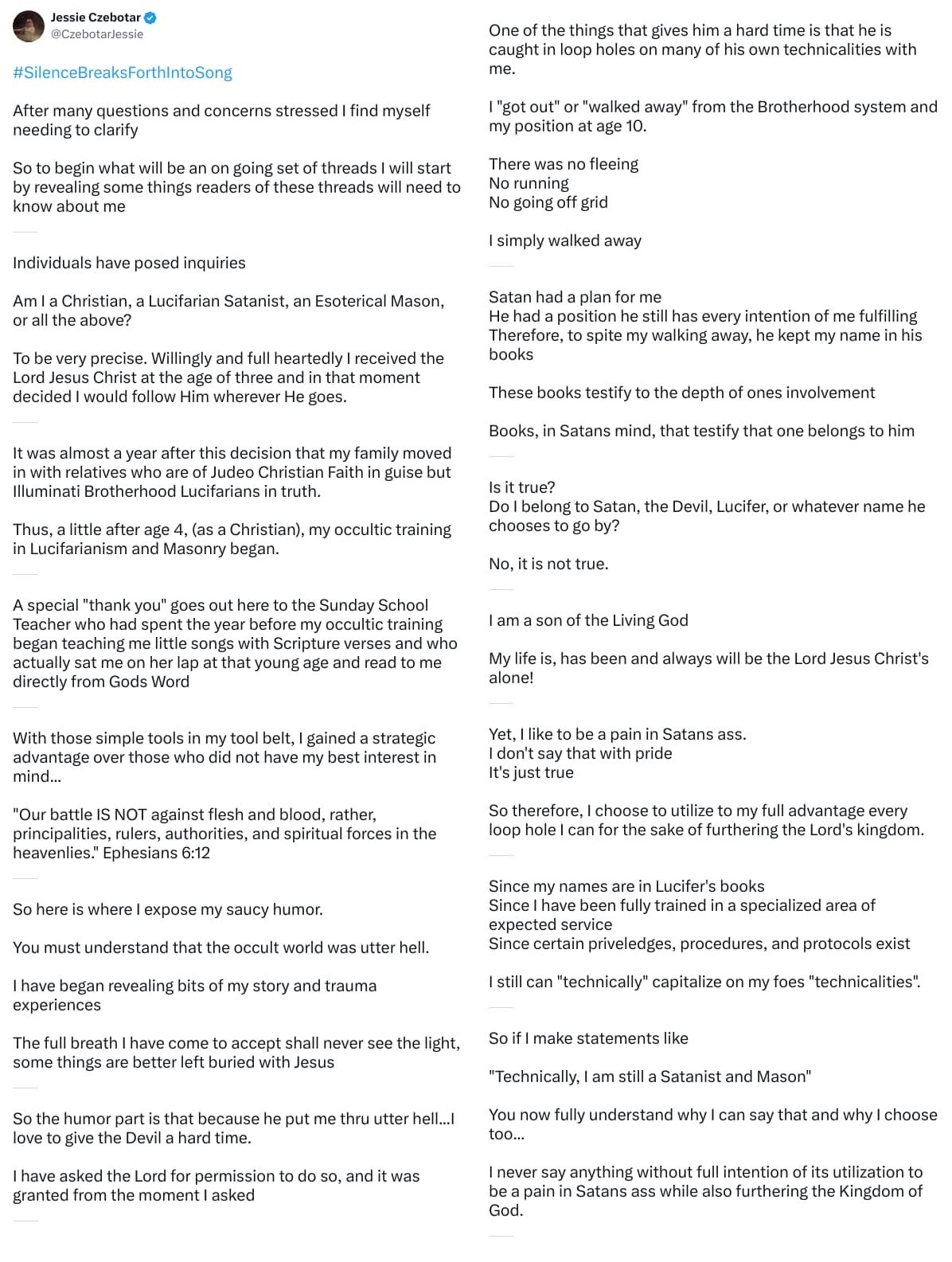 Jessie’s Tweets to Satanists [SSJ2] Jessie tweeting to satanists when her focus was trying to persuade them out of the system.