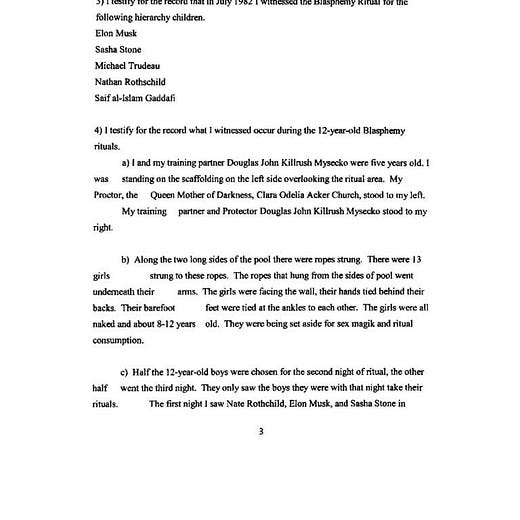 I also wrote, back in 2017 about Cathy O’Brien’s stories of human hunting, A Most Dangerous Game - Human Hunting [2], to try to bring attention to this horrific practice. The reader can check that out or I have reproduced Cathy’s hunting stories on this post in Appendix 2.
