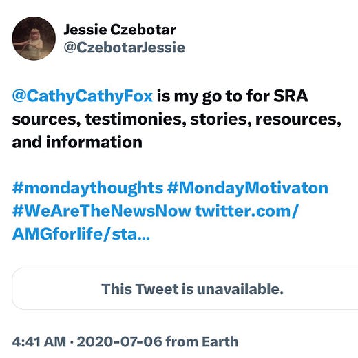 [SSASH2] 2023 Nov 19 substack Scarlet Sage Sarah Moch’s Anti-Survivor, Hate Group 2 - Hating on Survivor Svali https://scarletsage.substack.com/p/sarah-mochs-anti-survivor-hate-group-5a7 #sarahmoch #paulablades #survivorhate #svali #antisurvivor #gabbichoong