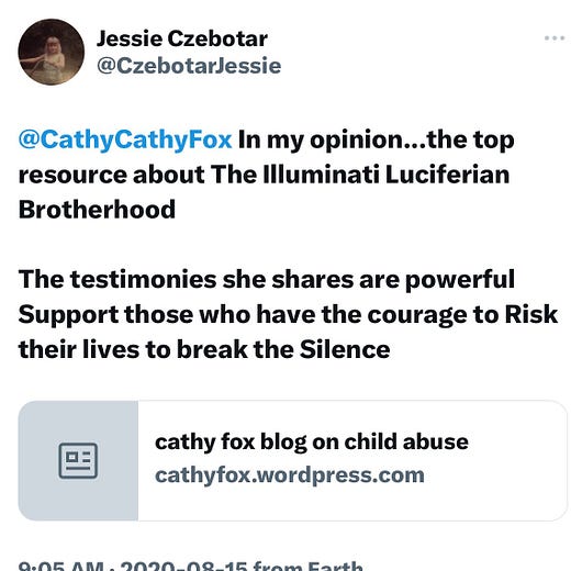 … “Jessie basically follows people like Cathy O’Brien and Jessie steals their stories, thus making it look like there are more testimonies than there actually are.”