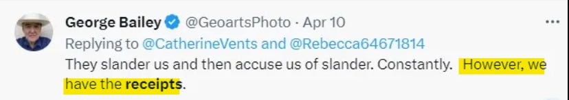 “They slander us and then accuse us of slander. Constantly. However we have the receipts”.